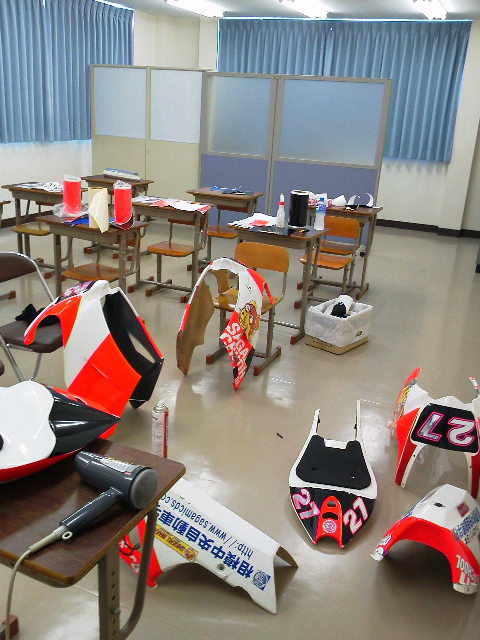 来る今月21日のレースに向けてマシンの外装を作っています。