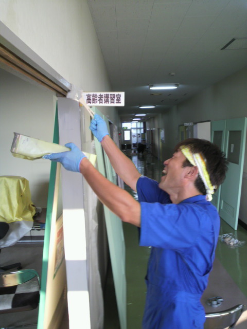 14日の休校日に教室の扉のペンキ塗りをしました。