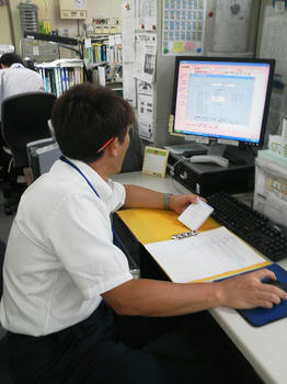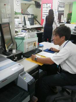 デスクに向かってヤフオク…いやいや仕事をしているリーダーの姿