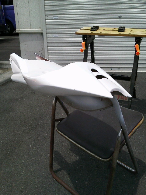 今日は一日中忙しくて朝から会社に来てマシンの外装『カウリング』を塗装したりしてました。
