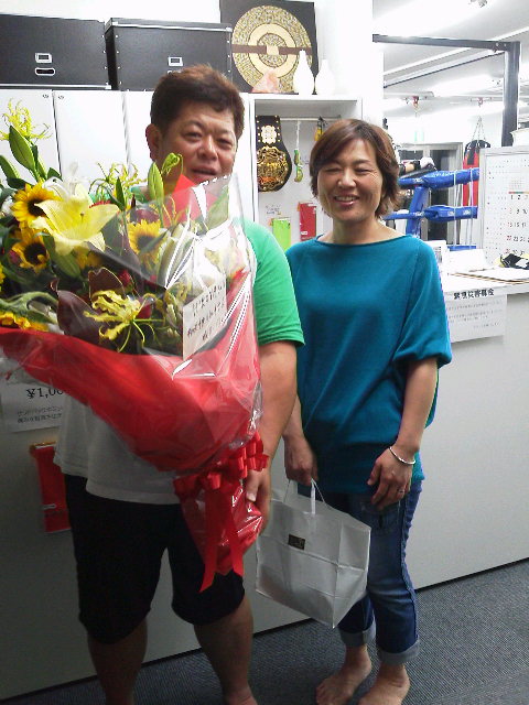 そして我らが『HIROYA』選手が15日ディファ有明で試合があるので、またまた花屋の妙ちゃんにお花をお願いしてGYMに届けました!p(^-^)q