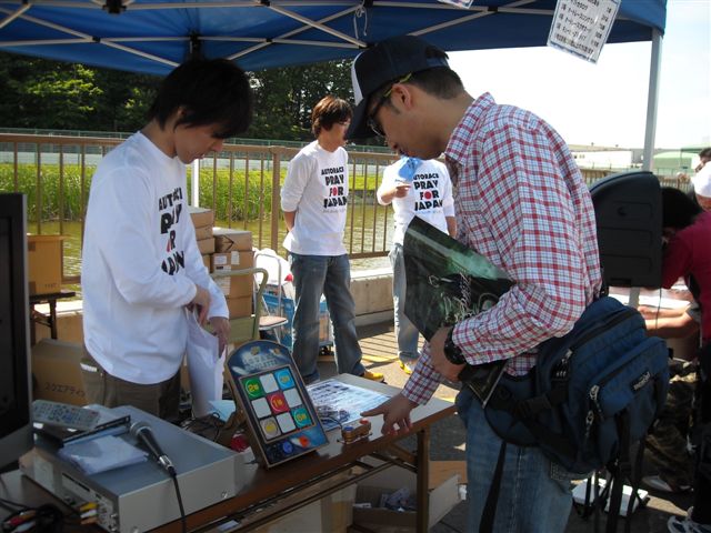 震災復興支援という事で募金活動や被災地の名産品や農作物なども売られていました。
