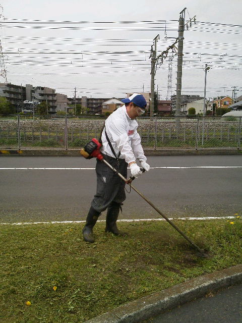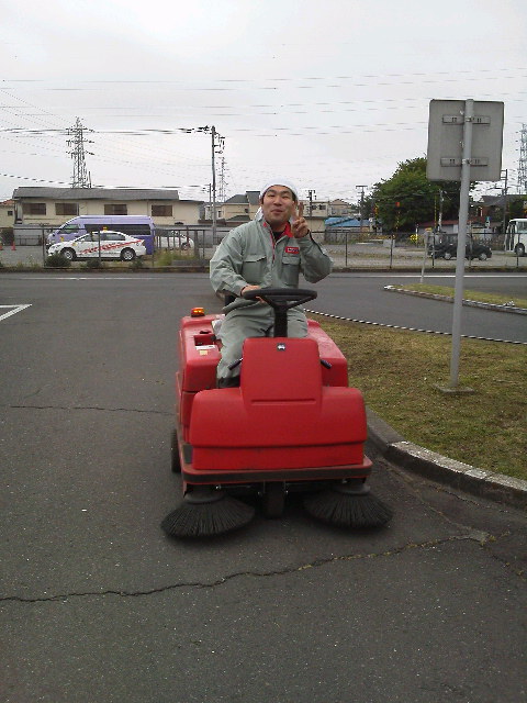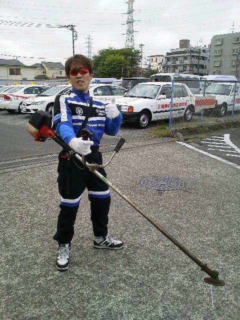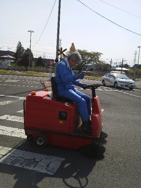 事故防止のため教習中に桜の花のカスを掃除する岩上課長です(^o^;)