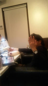 この写真は何してるかというと ネイルケアの様子です☆