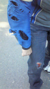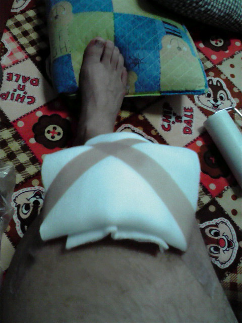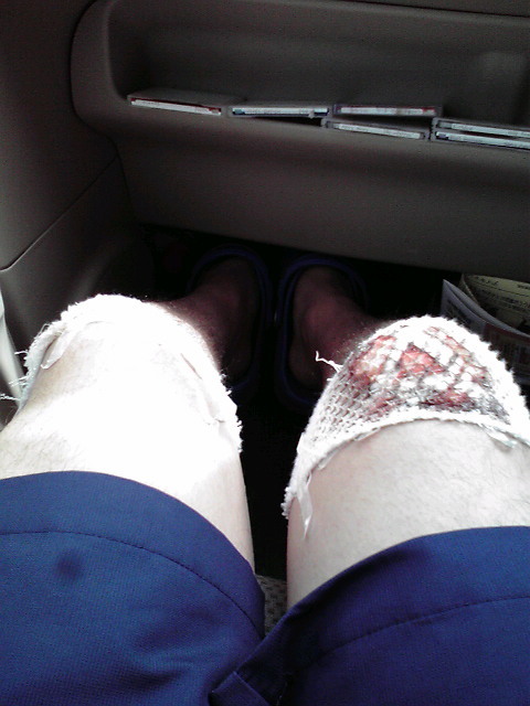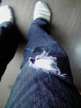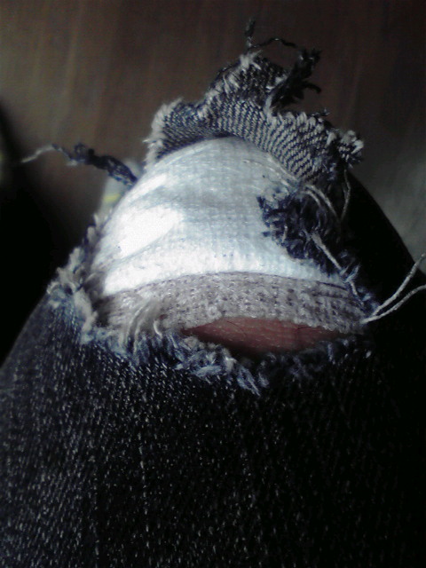 そうだ!事故のときのジーパンはちょうど膝に穴が空いている。