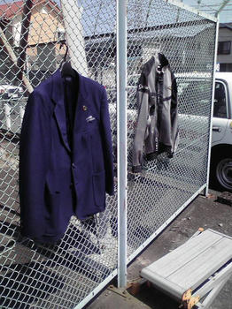 洗濯には最高の陽気だったので、冬の制服と原付講習用のジャケットを洗濯しました。