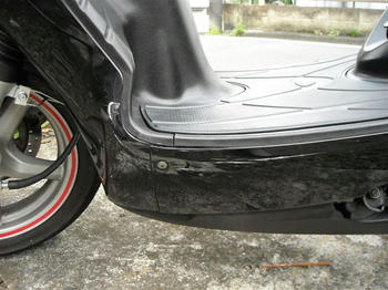 今日は原付『シグナスX』でほっつき歩いていたら、家の近くで車に当てられてバイクにダメージを受けました。