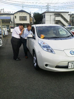 先日、日産の営業マンの方が日産の電気自動車『リーフ』を見せに来てくれました\(^o^)/